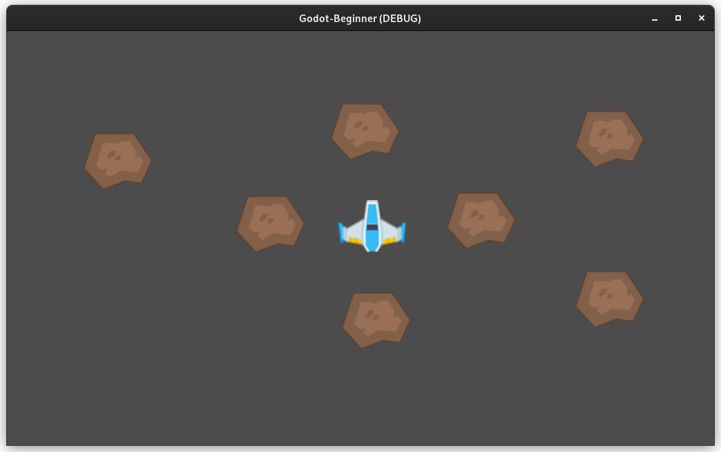 After all this, running the game will show that the asteroids are being spawned now and are targeting the player.